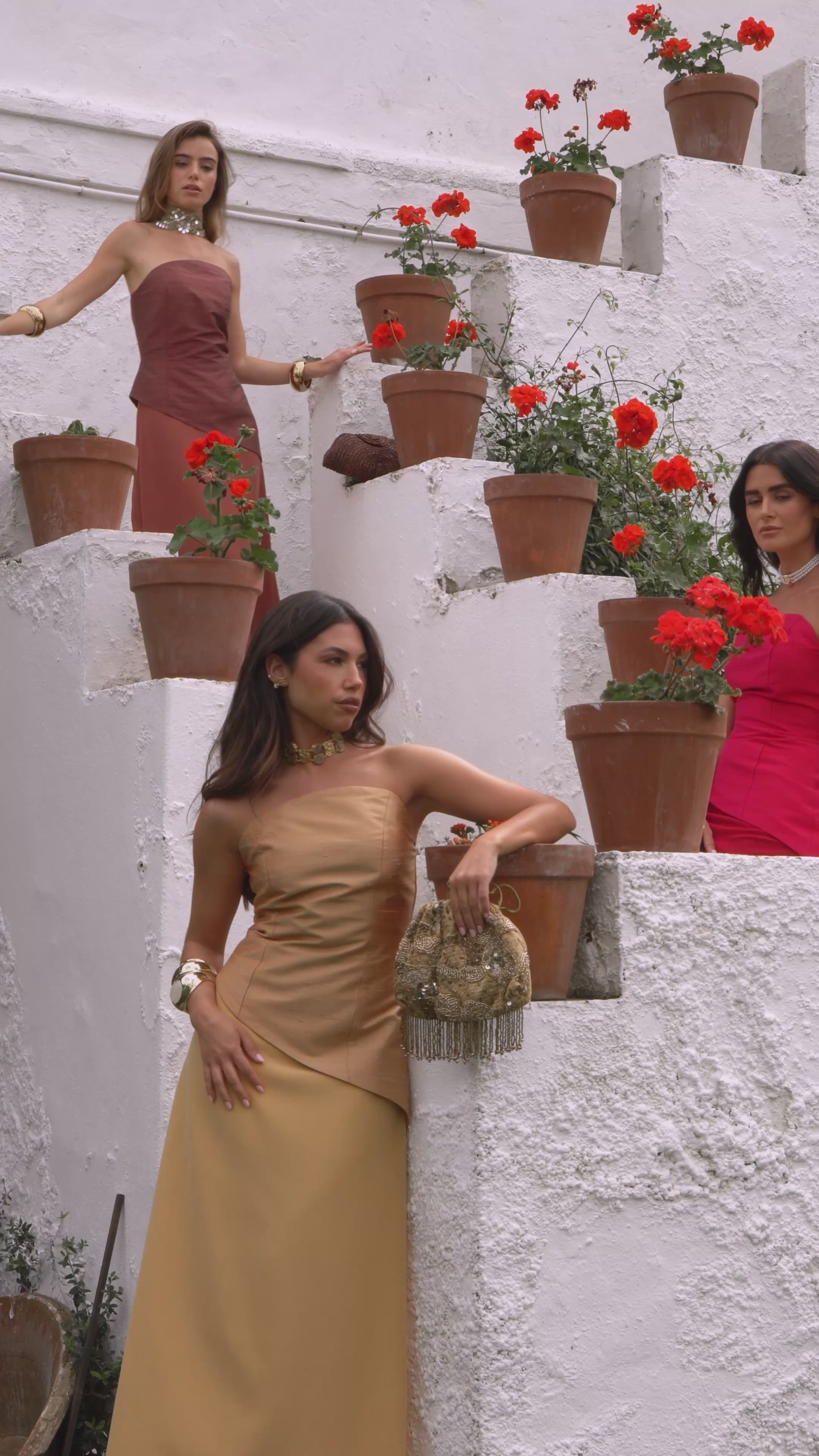 La falda d de corte evasé completa el look con fluidez y gracia, creando una caída elegante que acompaña cada paso y aporta un contraste refinado con la textura más natural del top.